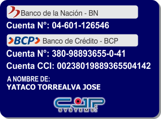 Acércate a cualquier Oficina o Agente del BANCO DE LA NACIÓN ó BANCO DE CREDITO DEL PERÚ (BCP) y realiza el depósito bancario de S/. 50.00 soles en las siguientes Cuentas de Ahorro: